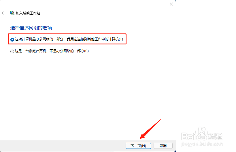 这台计算机是办公网络的一部分,我用它连接到其他工作的计算机,然后点击下一页。