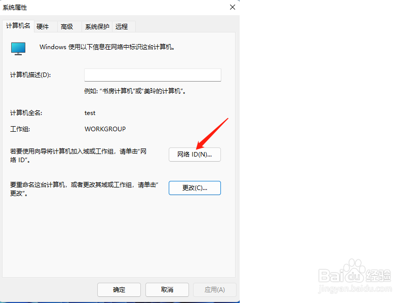 右键点击我的电脑选择属性,然后点击域或工作组。