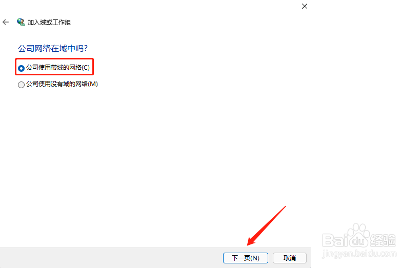 选择公司使用带域的网络,然后点击下一页。