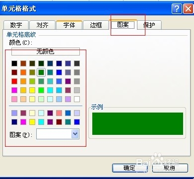 在“图案”标签里选择自己喜欢的颜色。在“边框”标签里给单元格加上边框,然后确定