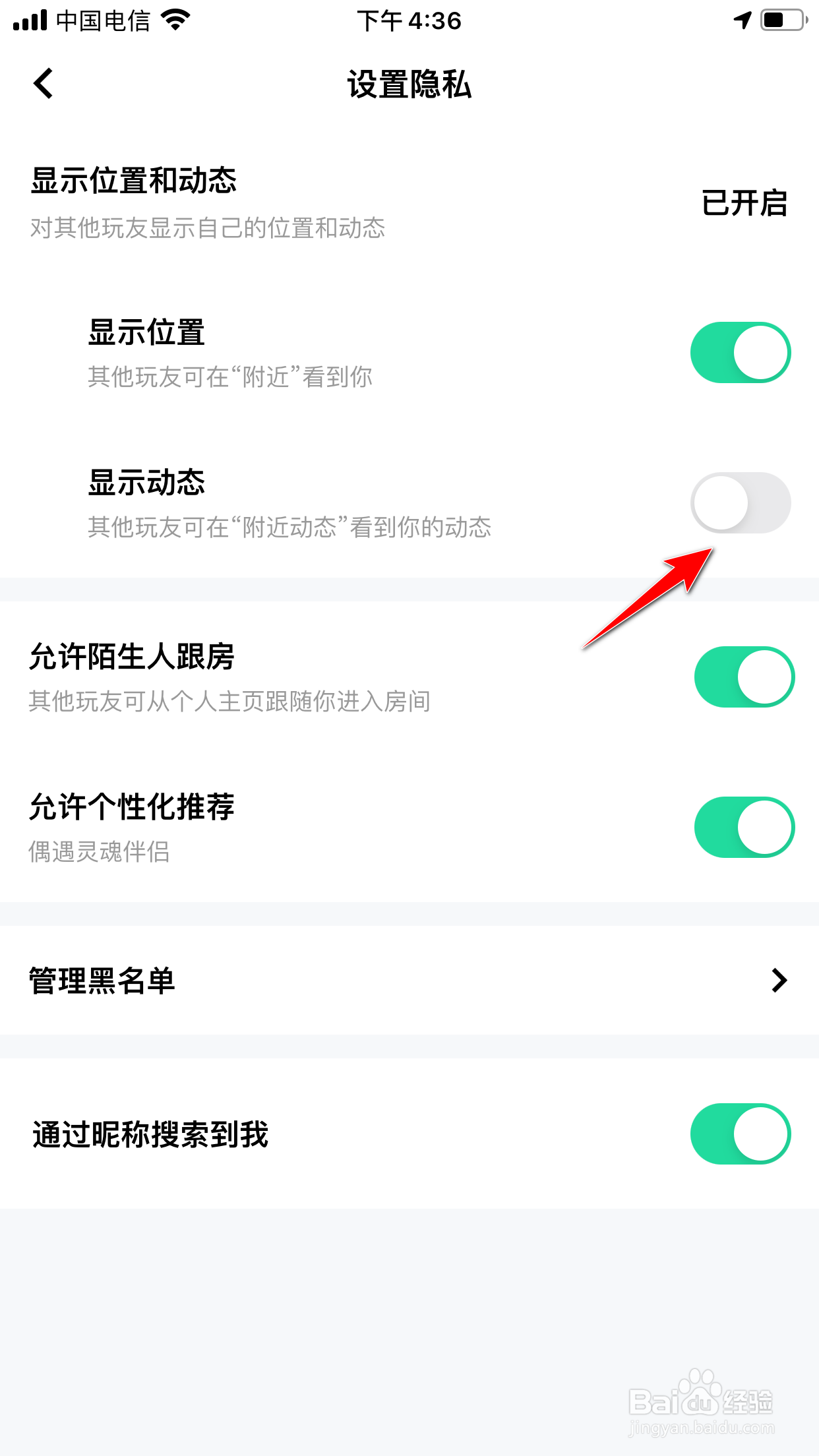 点击显示动态的选项后方的开关。