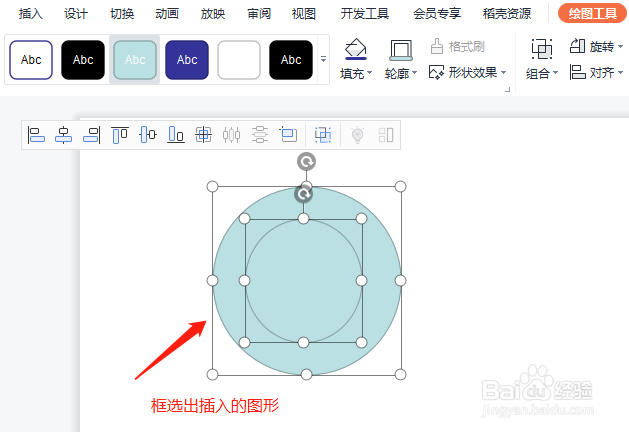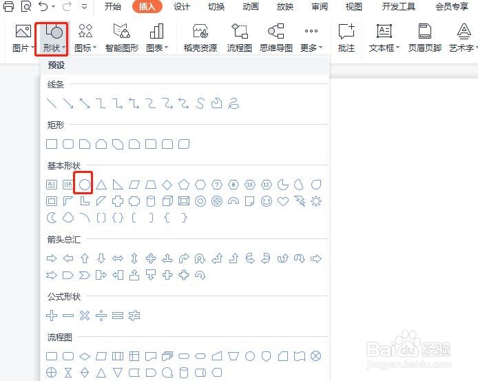 在打开的下拉菜单中,选择基础图形,选择圆形。