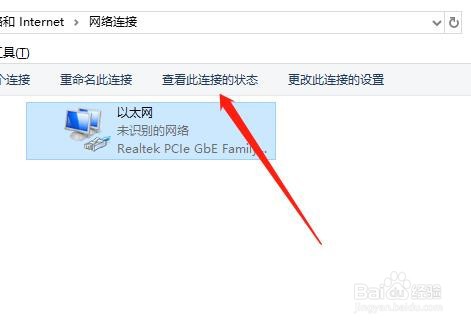3、进入后,先点击选中【以太网】,再选择【查看此链接的状态】。