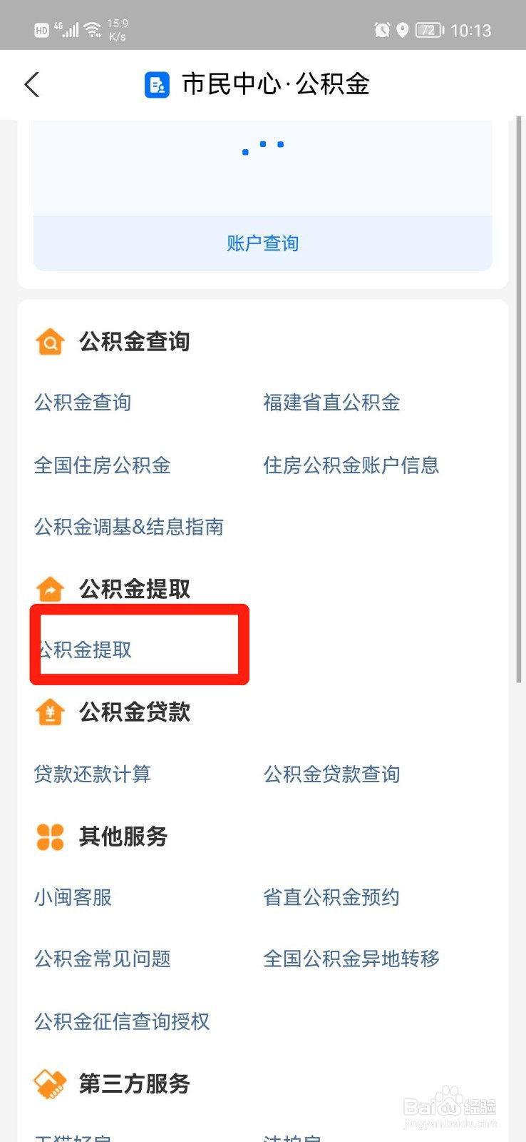点击【公积金提取】即可申请公积金,详见下图所示。