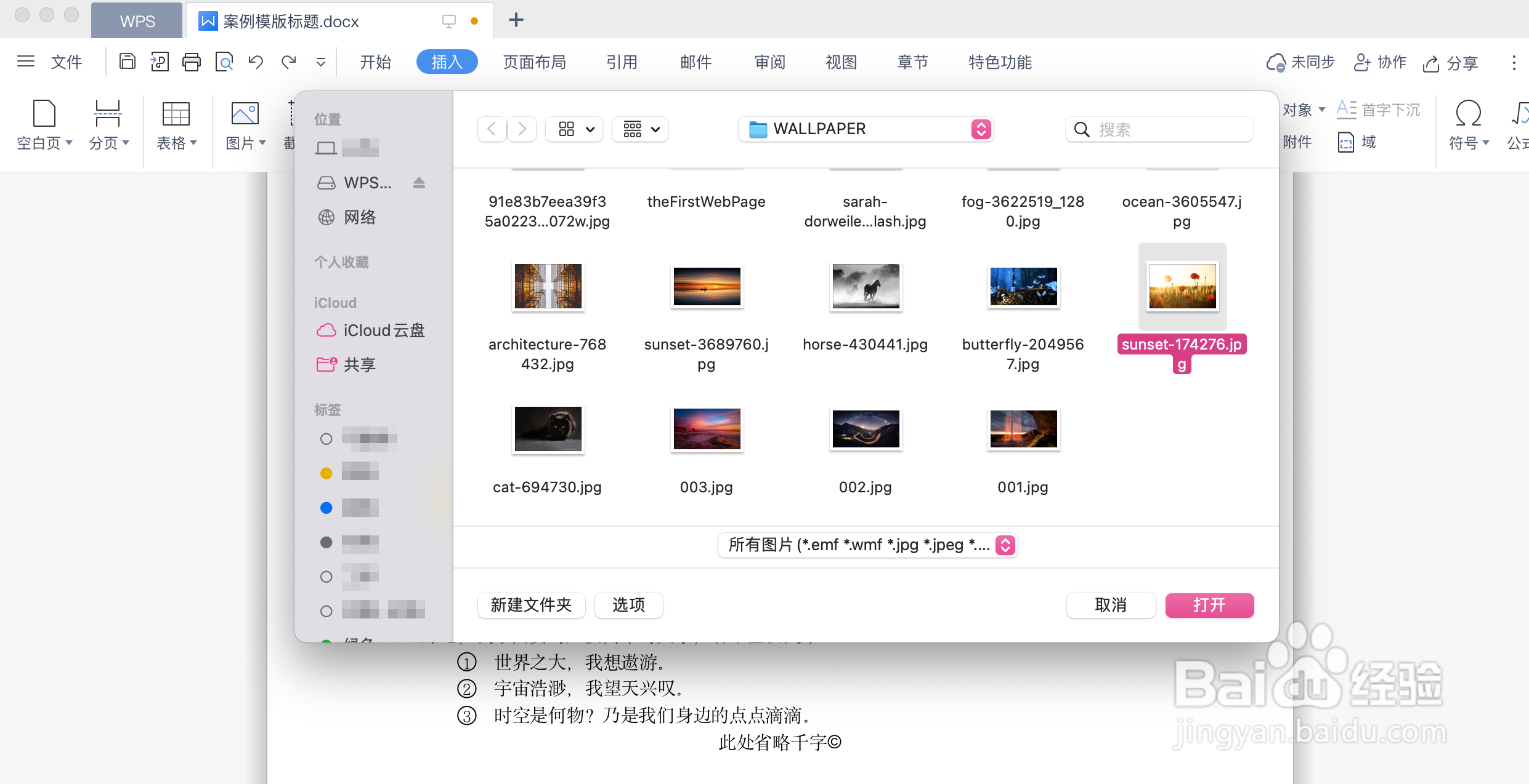 选择本地图片所在的文件夹,选中目标图片,最后点击右下方「打开」选项,即可插入本地图片。
