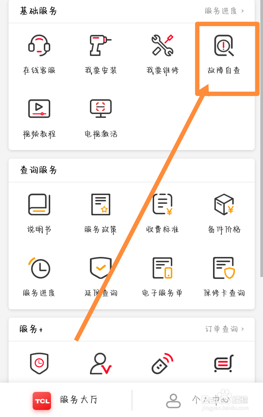 进入泉撤服务大厅,选择故障胆裹裕自查。