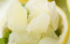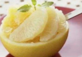 热蒸柚子肉就是把柚子分成块状以后连皮一起入锅蒸制,在蒸制的过程中,柚子皮中的芳香油会直接浸入到柚子肉中