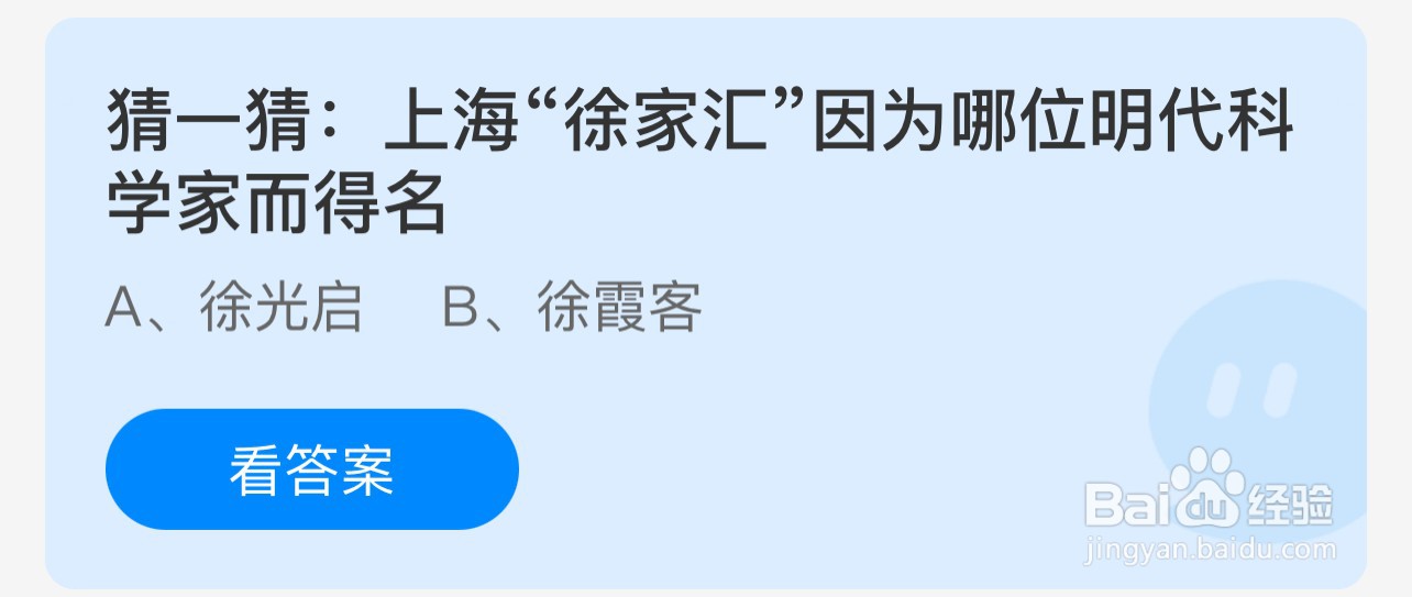 第二题:猜一猜:上海“徐家汇”因为哪位明代科学家而得名?