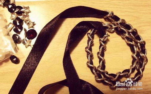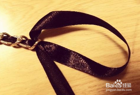 将彩带穿过链条,为了美观尽量保持彩带不要扭转。