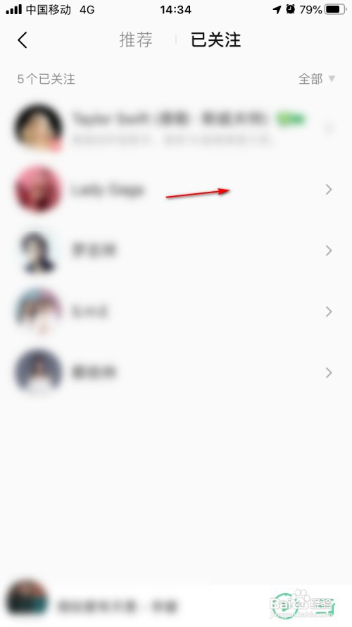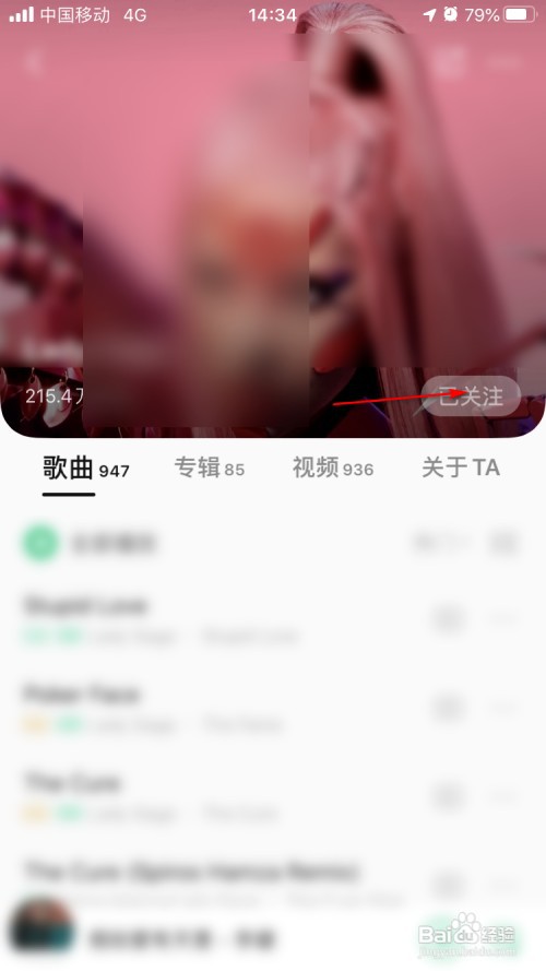 然后,我们点击下某个已关注的歌手。