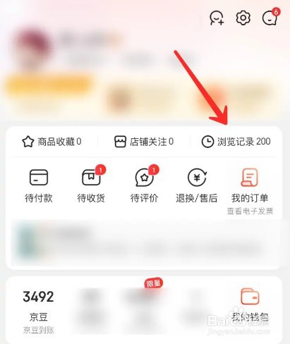 第一步,打开手机京东APP,在软件我的页面里点击浏览记录。