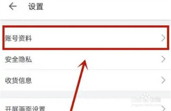 我们进入设置之后,然后我们找到账号资料的功能,如图所示。