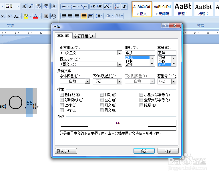 如下图,弹出【字体】对话框,在“字号”中选择相应的字号,本例选择“四号”,设置好后点击【确定】按钮。