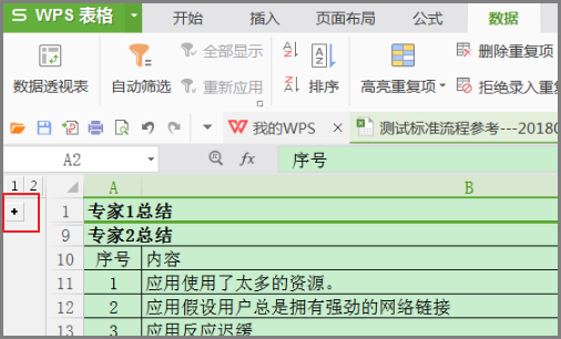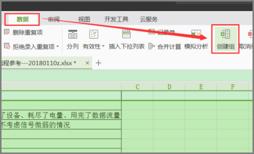 1、打开WPS表格,准备好需要设置组的工作单元。