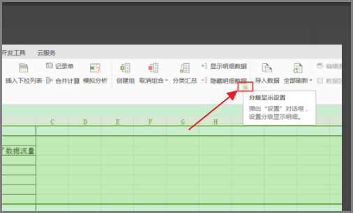 5、但是默认的组件是在内容的下方,一般要求组件要展示在分组的上方, 即+应该在首行。点击“隐藏明细数据”右下方的按钮,即分组显示设置。