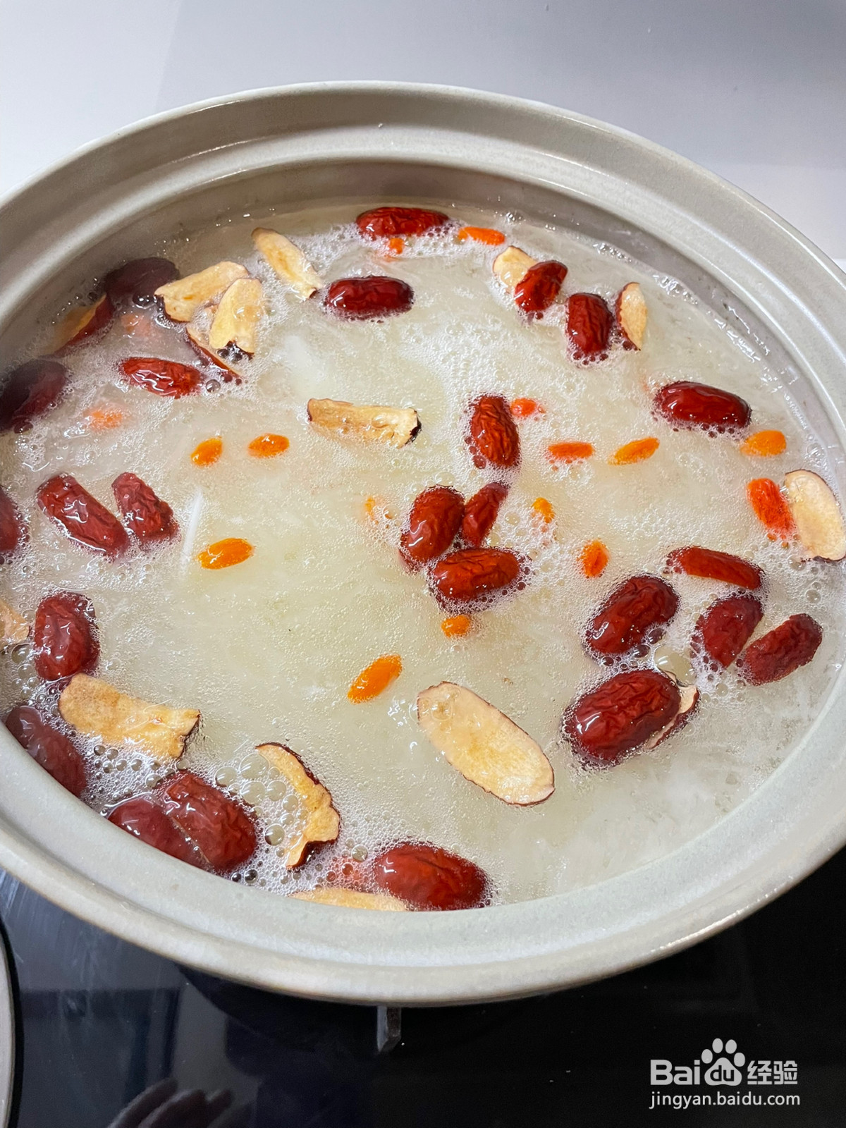 放入喜欢的配料,红枣、枸杞、冰糖,山药