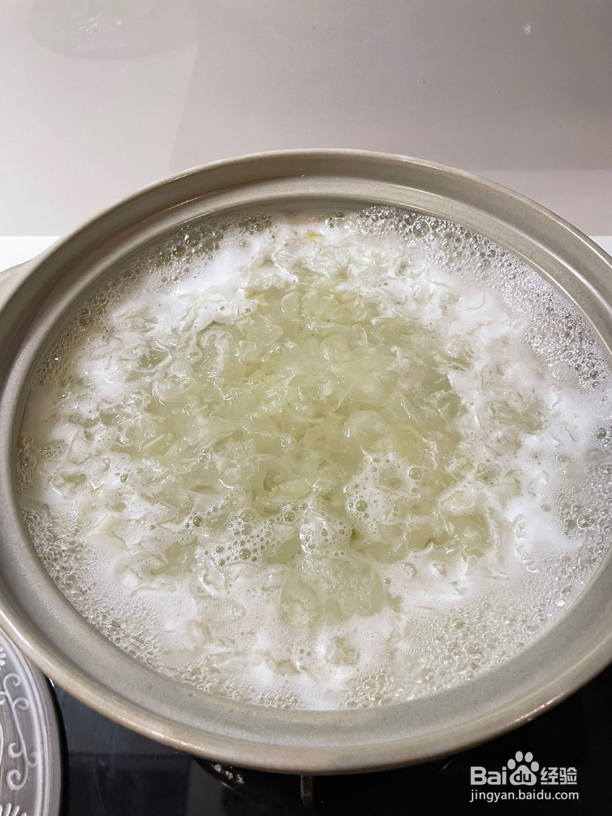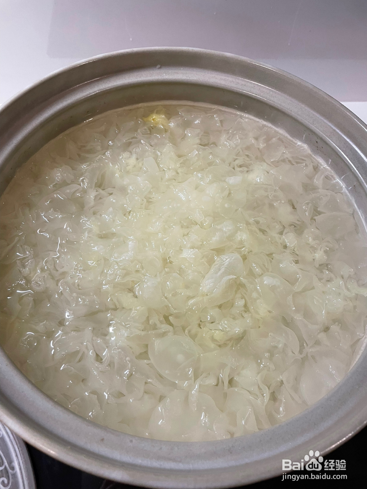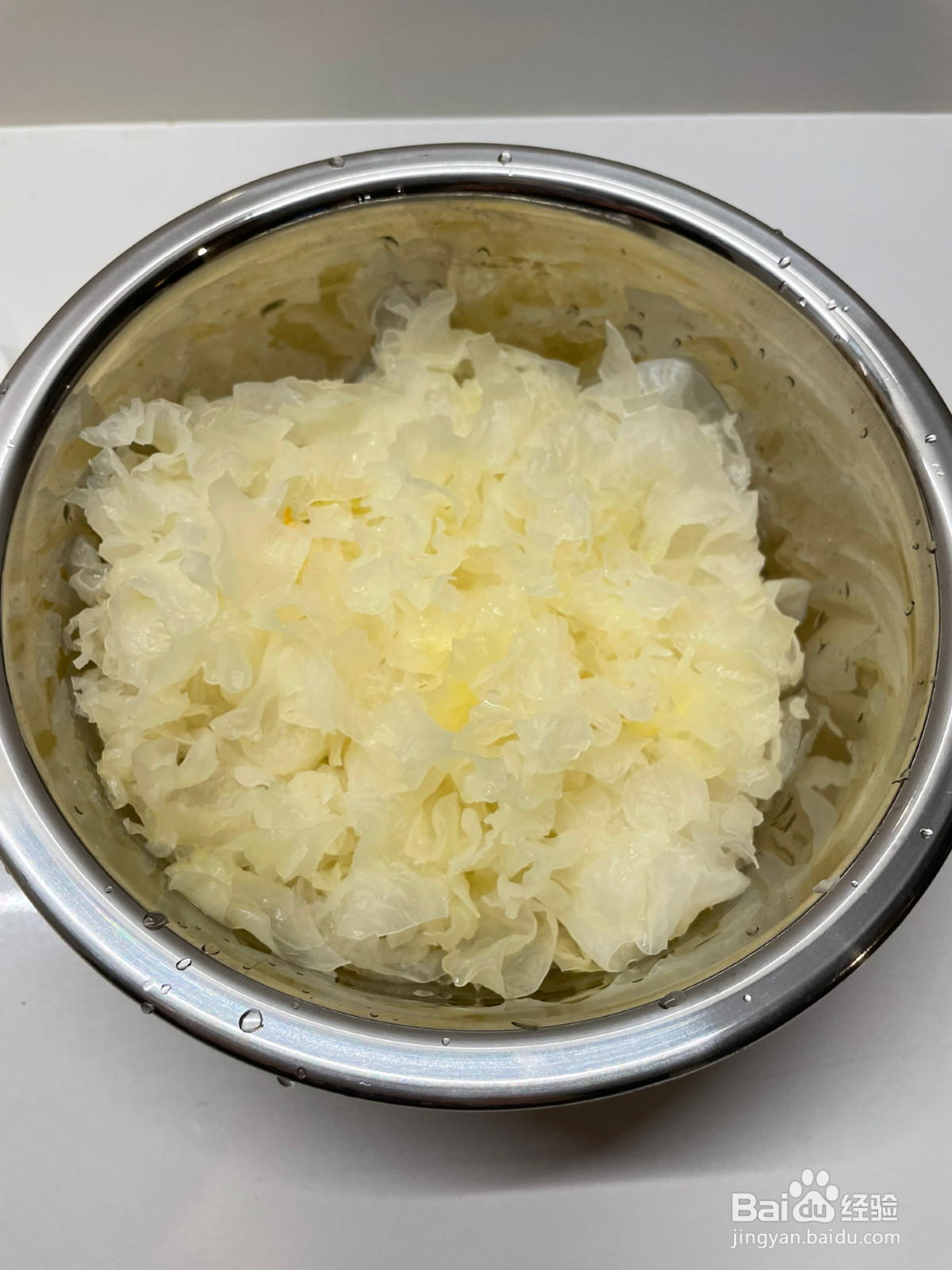 我买的是鲜银耳,如果是干的,提前泡发,加入淀粉,洗的更干净。