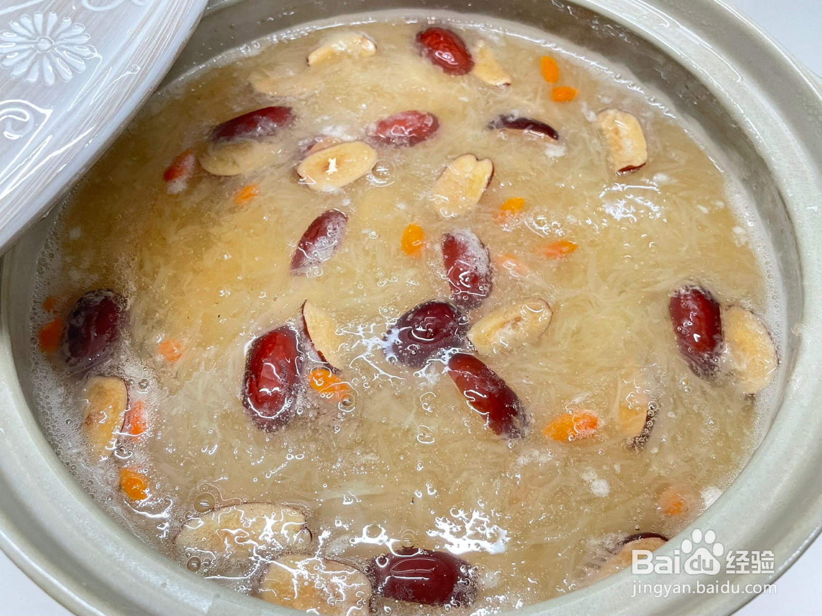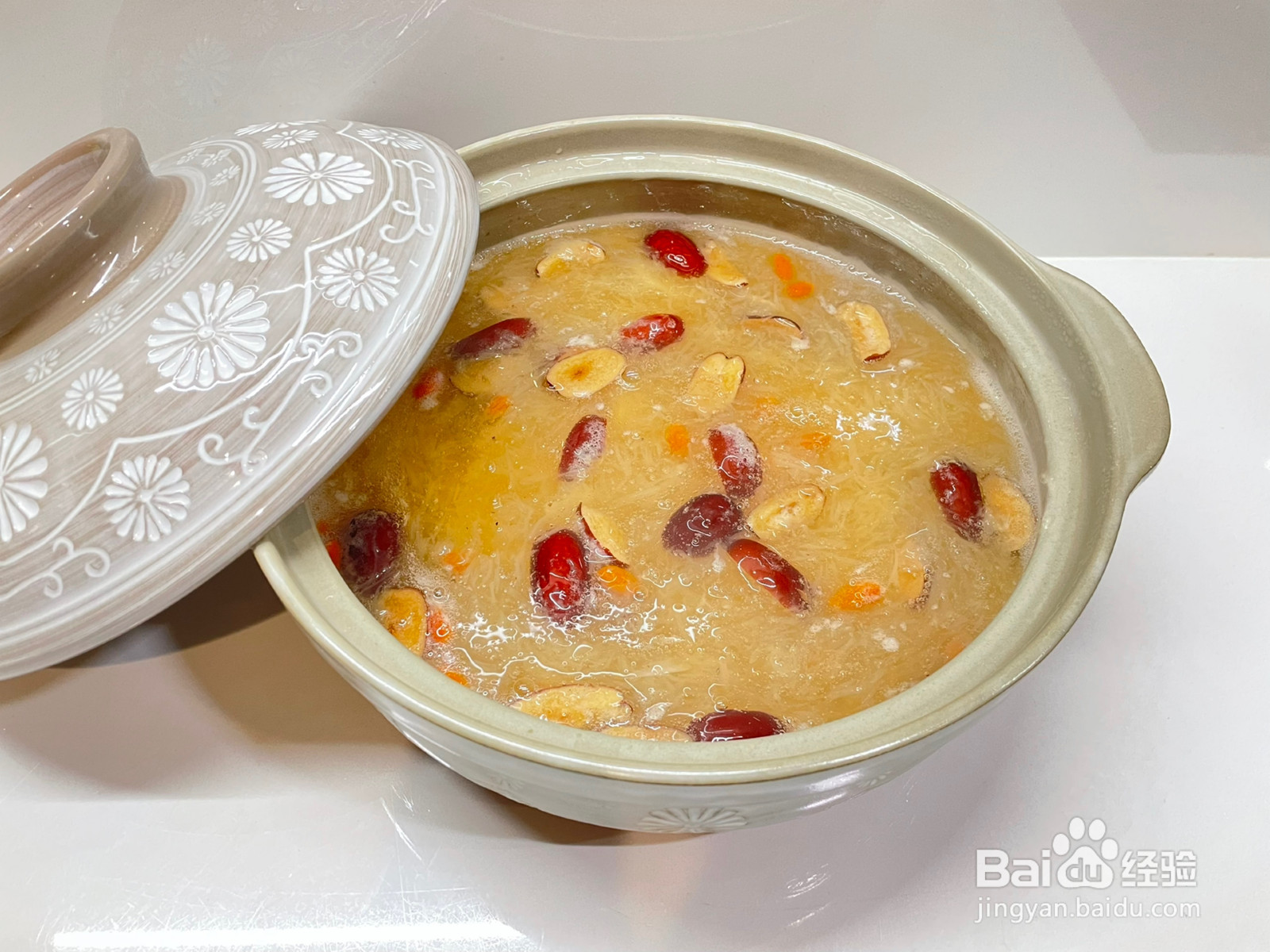 放了红枣,枸杞,颜色会发红,不放就是白色