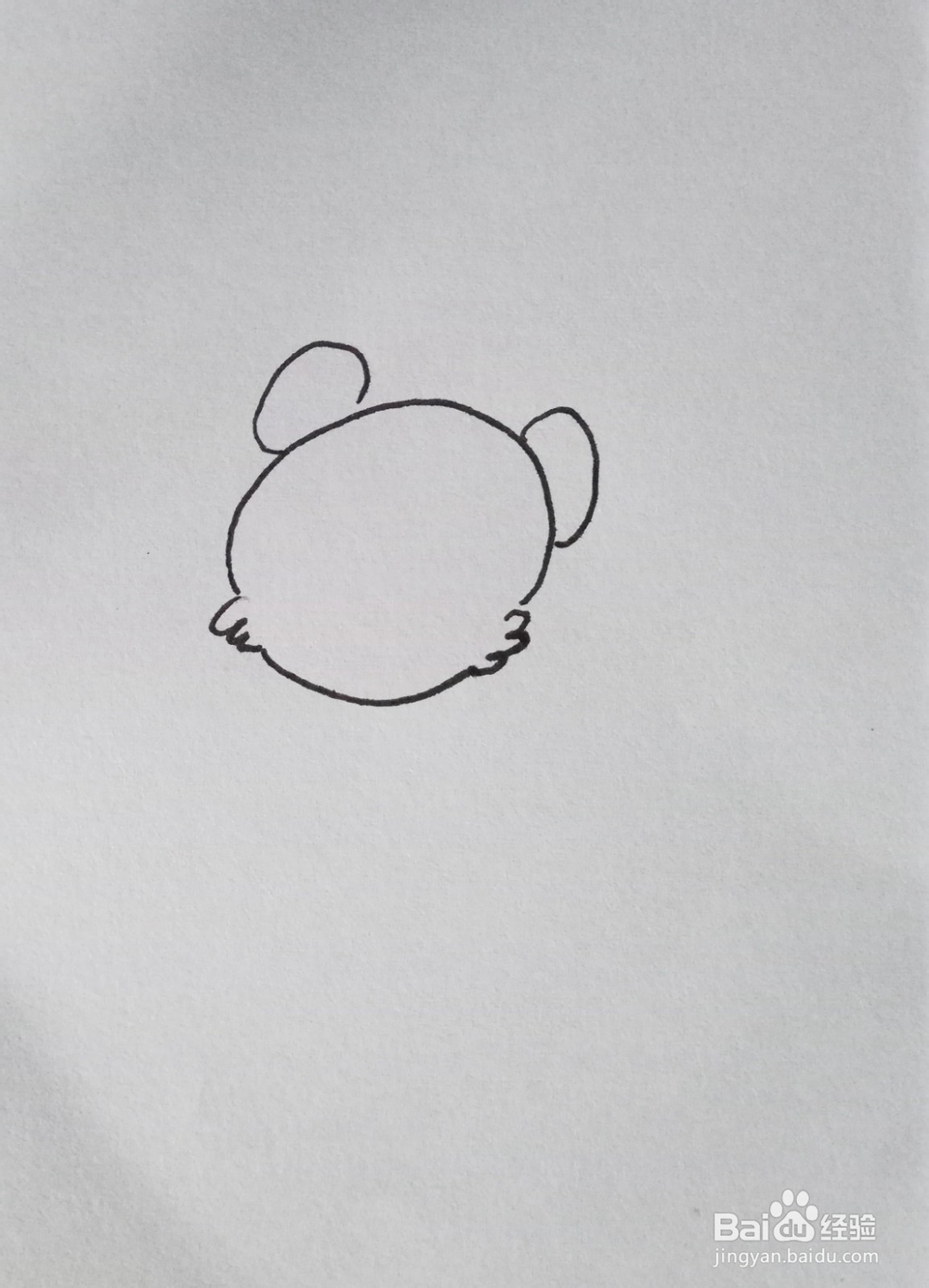 在白纸上用曲线画一个圆圈,这是猫的头部轮廓,然后再用曲线画出猫的耳朵,眼睛,鼻子和嘴巴。