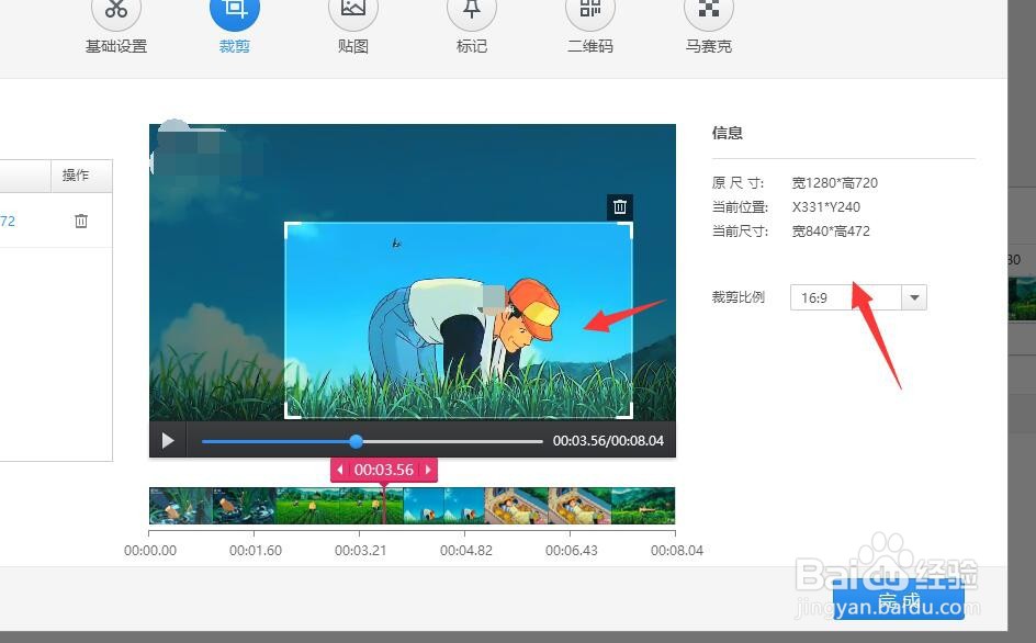在裁剪面板中,绘制裁剪区域,在右侧设置栏中可设置裁剪比例