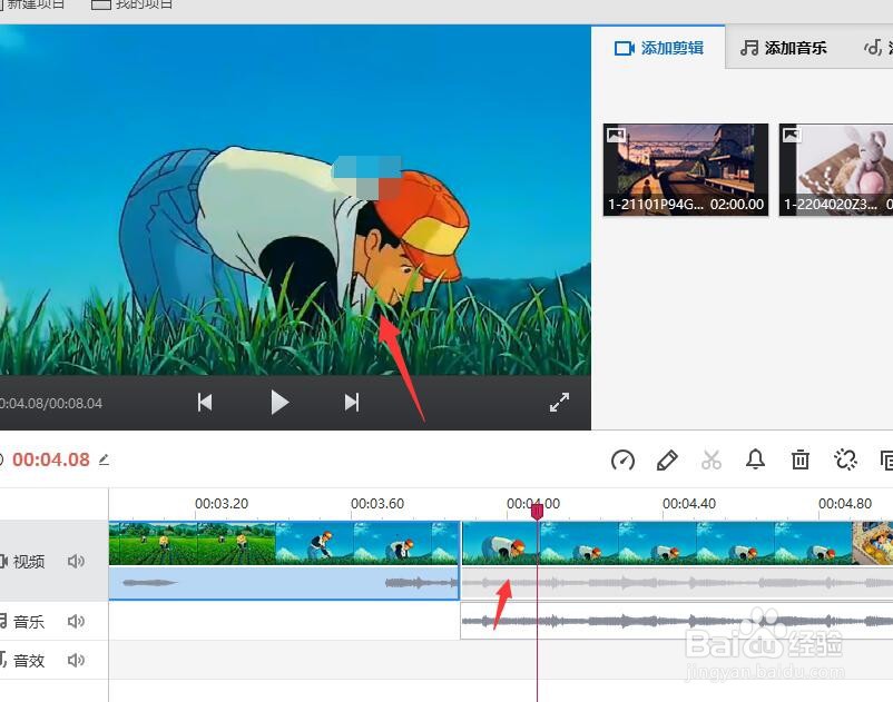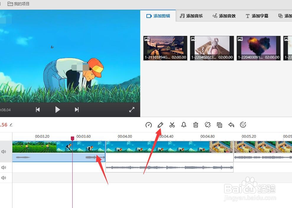 将视频添加到快剪辑后,将如图的编辑选项打开