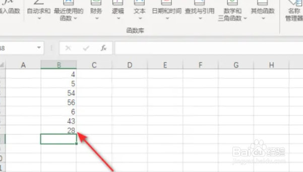 打开excel,输入一组数字,选择数字下方的单元格,点击公式,