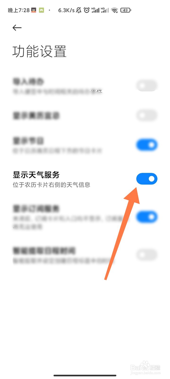 进入功能设置页面,点击开启【显示天气服务】即可。