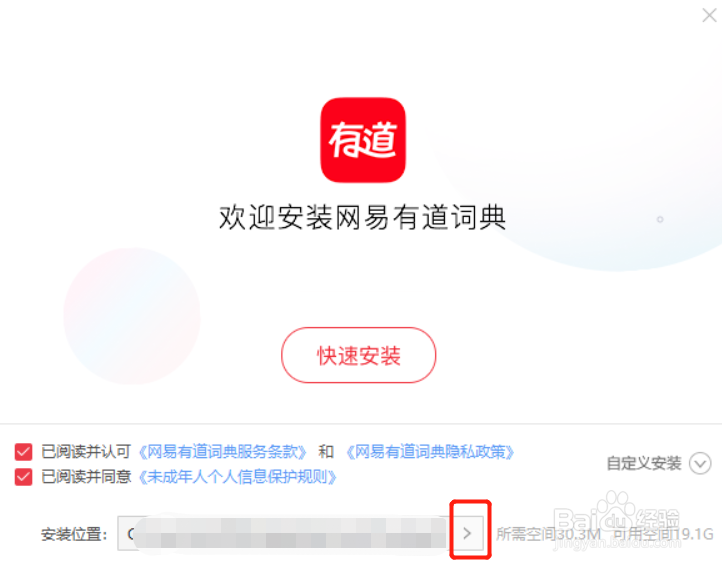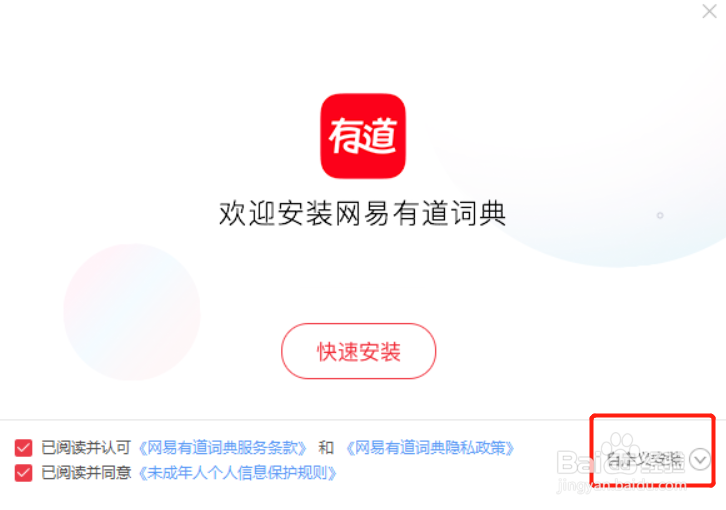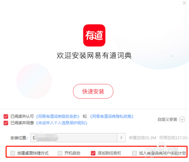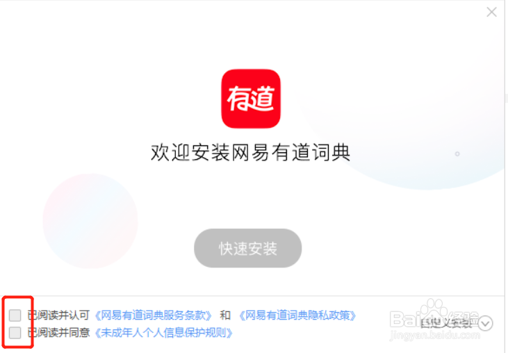 首先,双击网易有道词典的安装包,在初始界面勾选同意