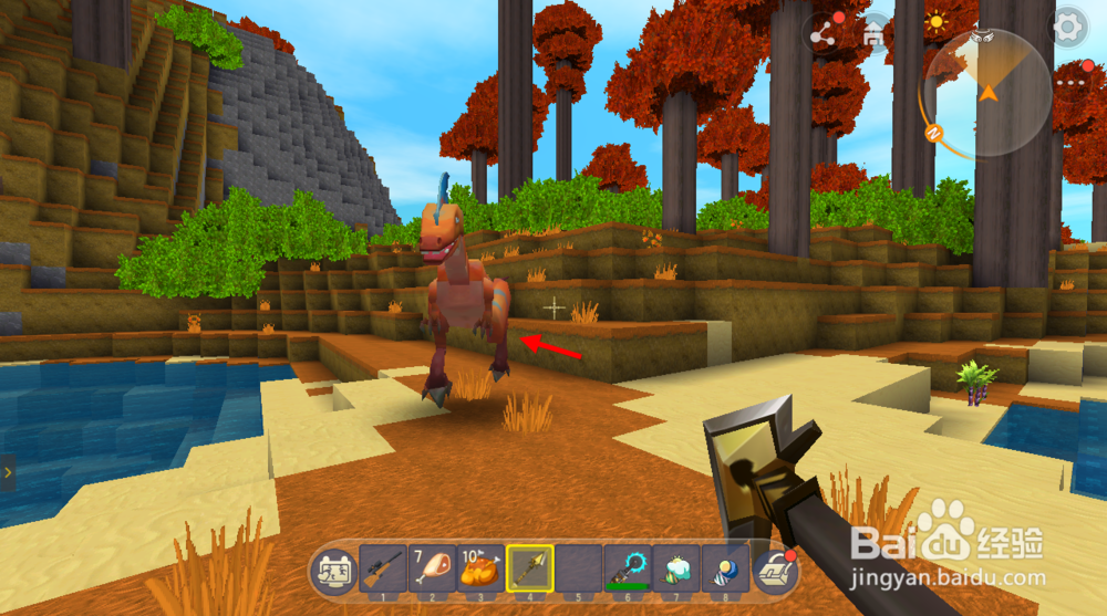接着玩家找到红杉树林地形,红杉树林是速龙生活的地方,如下图所示就是速龙,和鸡牛羊不同的是速龙会主动攻击玩家,事先一定要准备好武器。