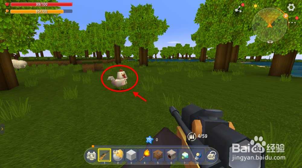 拿出武器将鸡杀死有几率得到鸡腿、羽毛和或者鸡蛋。