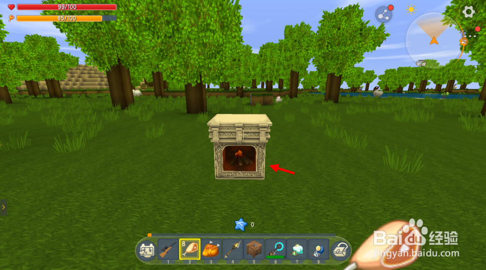 拿出熔炉将生鸡腿放进去并添加燃料,将生鸡腿加工成烤鸡腿。