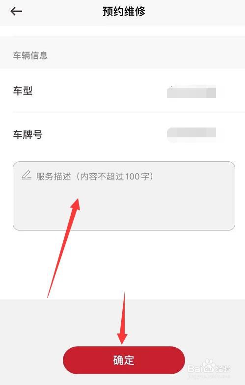 输入汽车地板进水,点击【确定】就可以预约维修了。