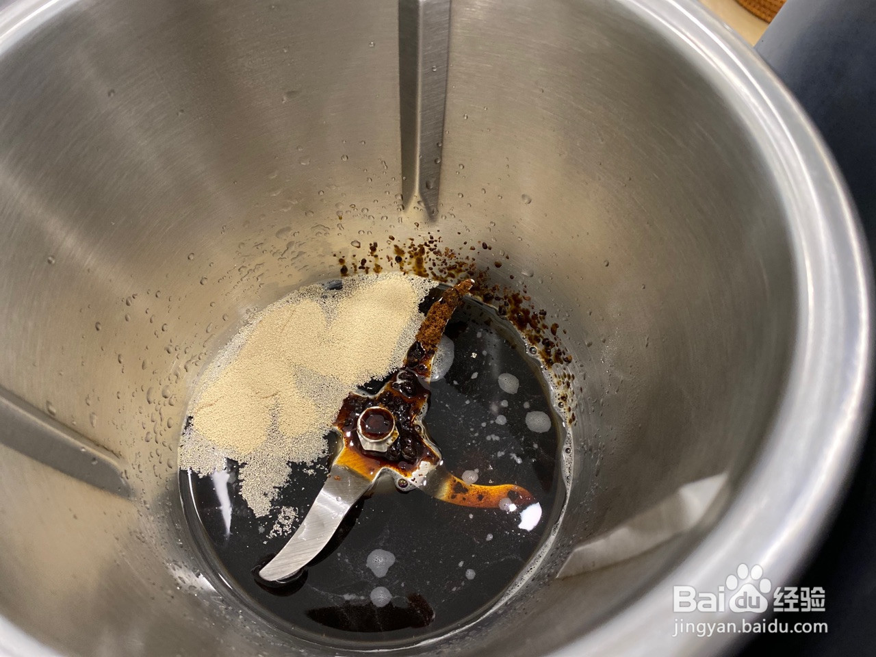 将水、红糖、酵母放入锅内,2分钟,37度,转速2,融化红糖同时激活酵母
