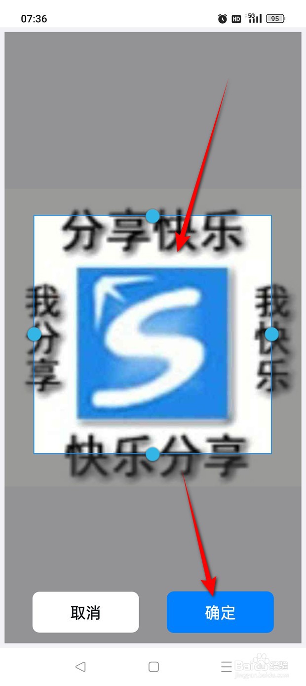 手机相册点选一张图片并设置裁剪区域,点击“确定”即可。