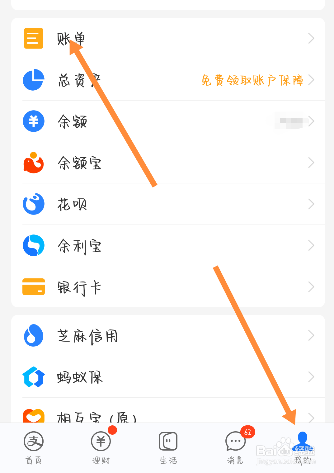 打开账单界面,点击进入支付宝订单。