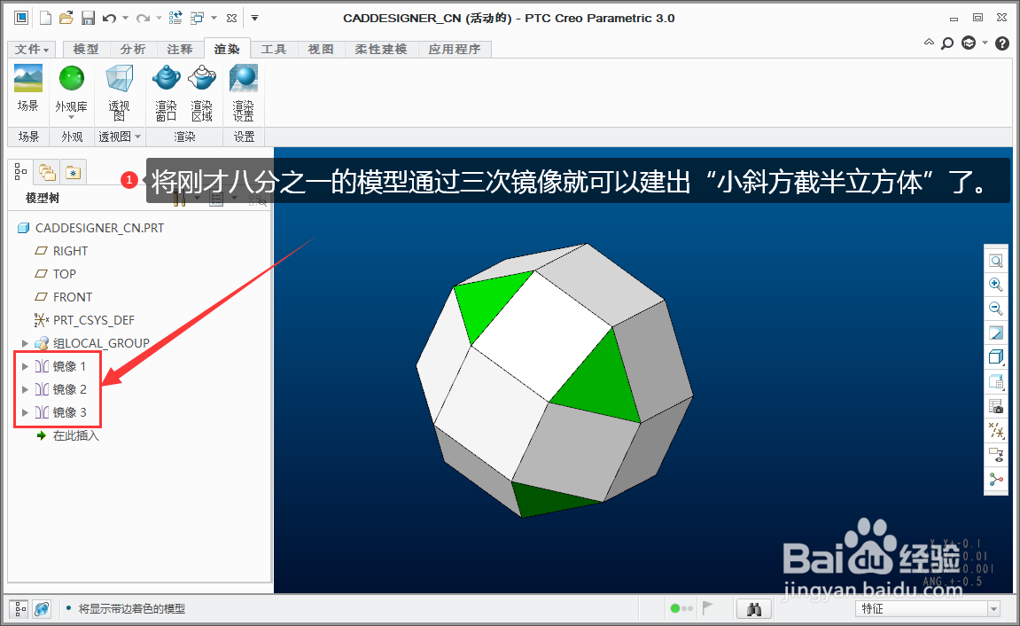 CREO3.0画阿基米德“小斜方截半立方体”的方法