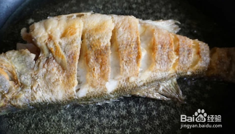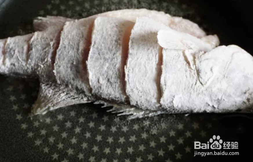 将鱼洗干净后,去鳞掏肚,剪去硬刺,冲洗干净,再在鱼的两面划上几刀,洒一点食盐和料酒,抹匀,腌制30分钟左右。