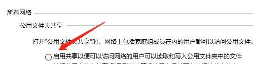 3、进入后,点击选中【启用共享以便可以访问网络的用户可以读取和写入公用文件夹中的文件】即可。