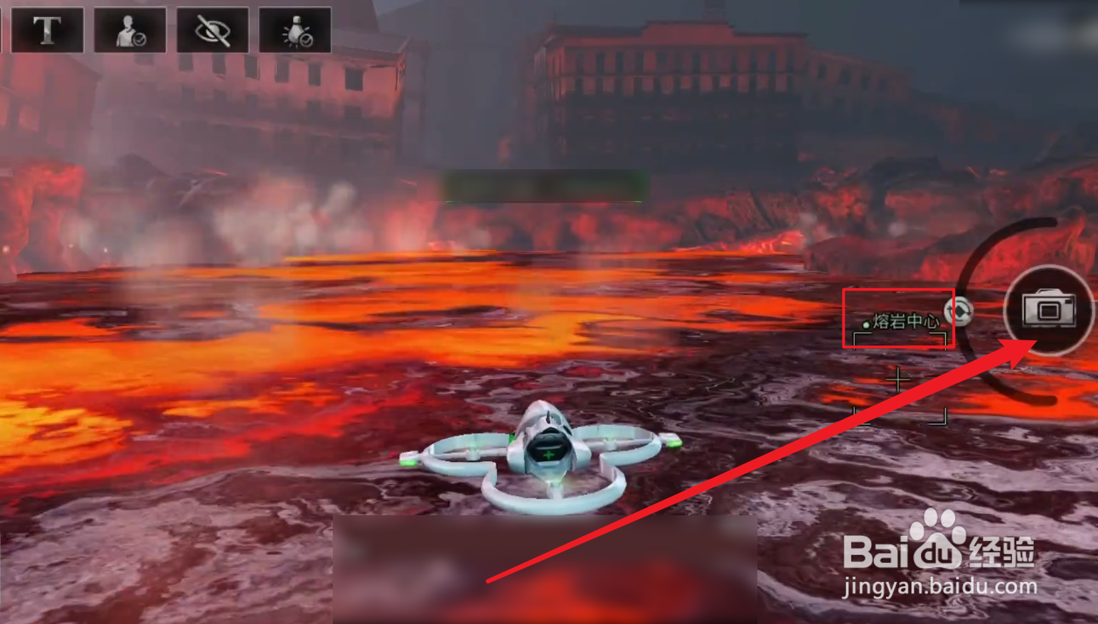 最后将无人机准星瞄准【熔岩中心】并点击右侧【相机按钮】即可完成拍照获得奖励