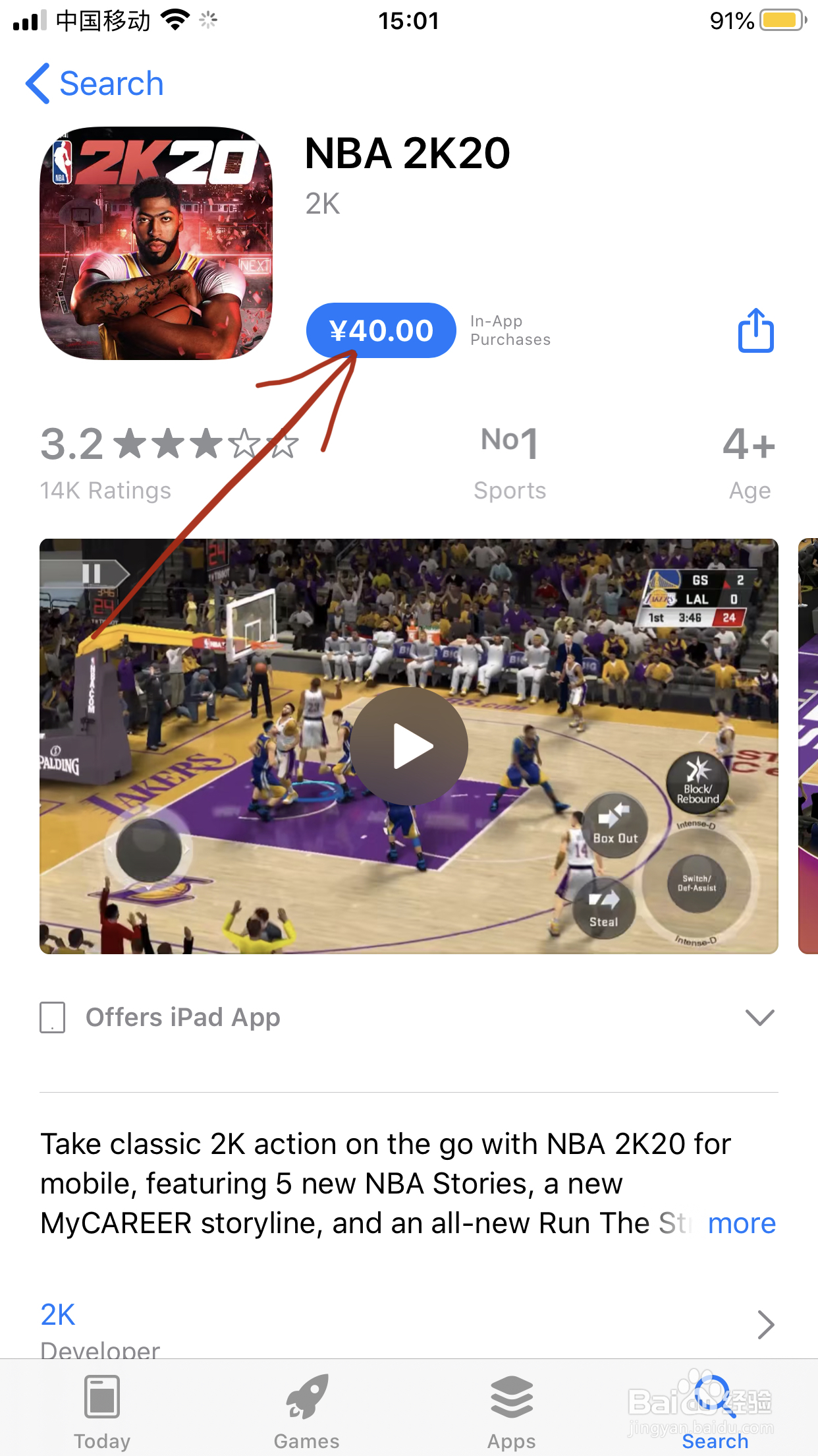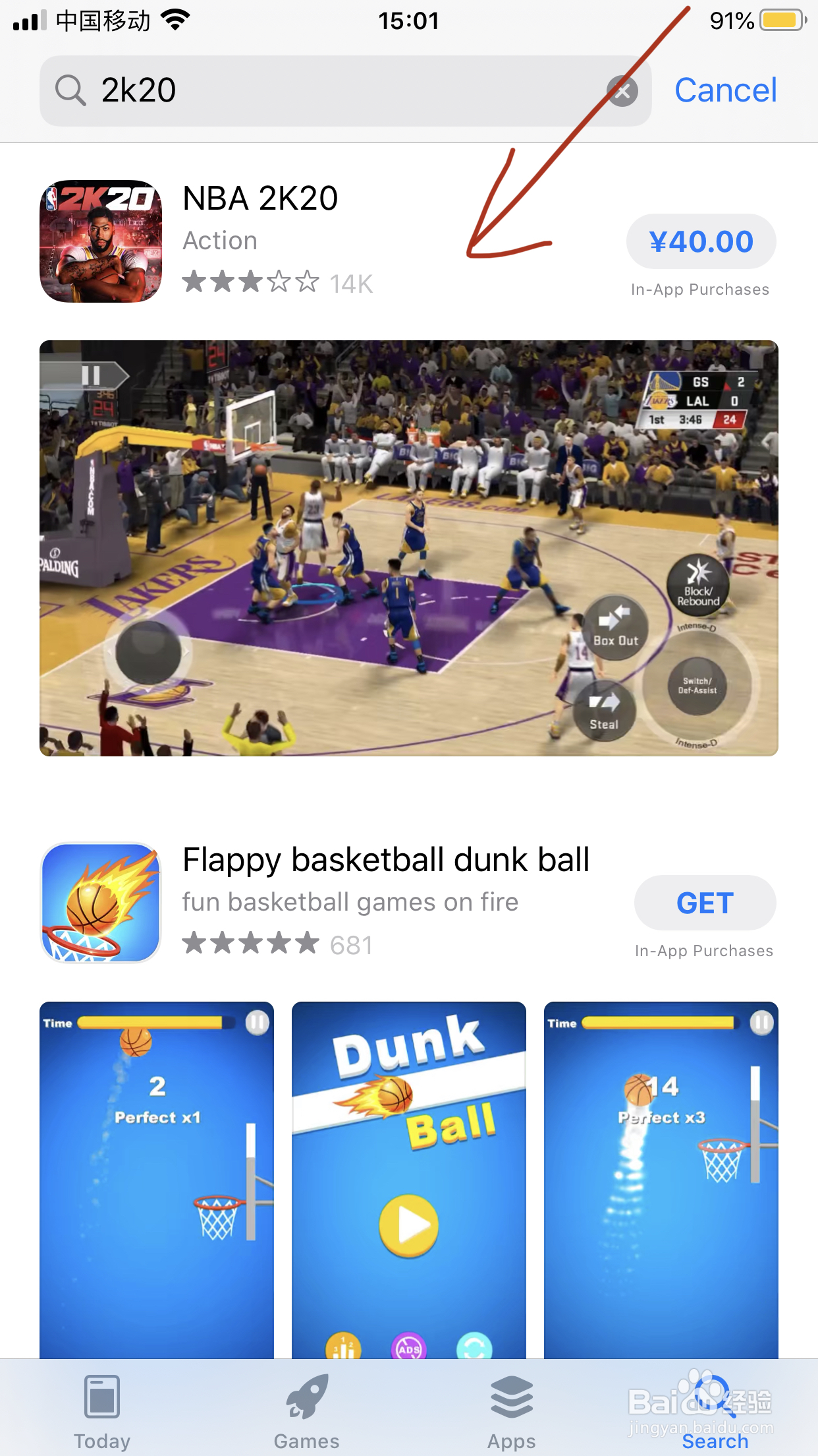 输入“2K20”选择第一个搜索结果。