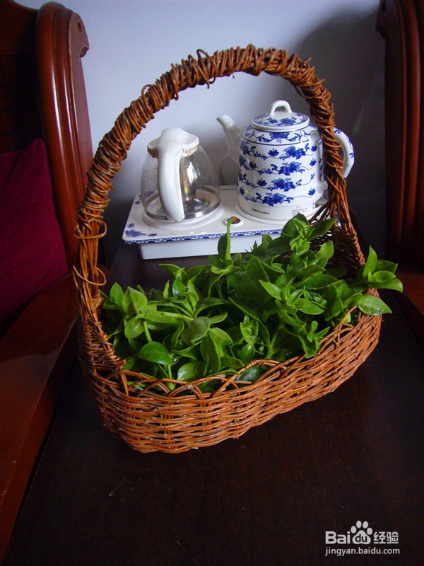 在菜市场买一些穿心莲,把嫩叶吃掉,把老茎叶种在花盆或泡沫箱子里,用不了几天,翠绿的嫩芽就败往会疯长起来。