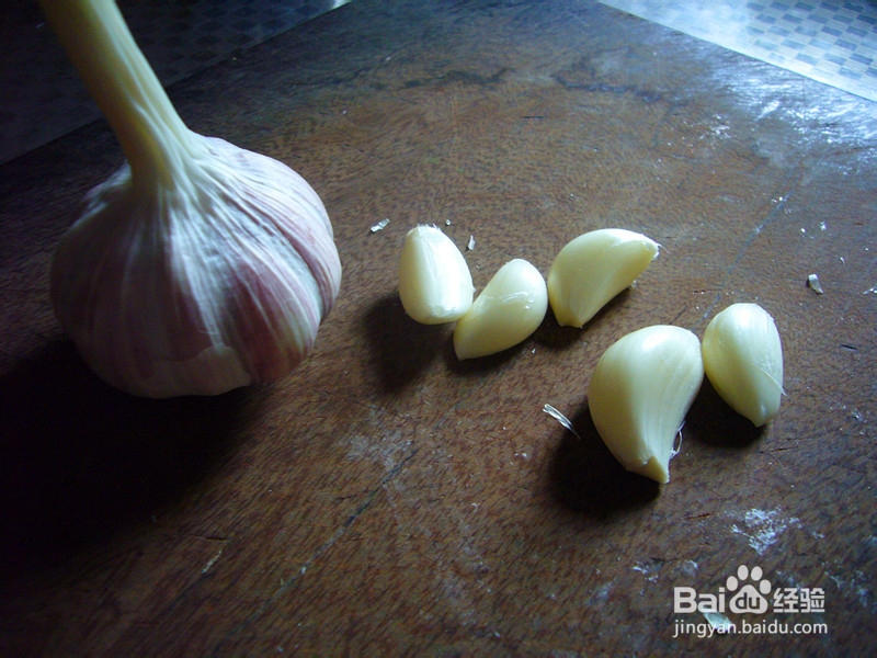用新鲜的大蒜生拌穿心莲,味道很鲜美。把大蒜去皮切碎,