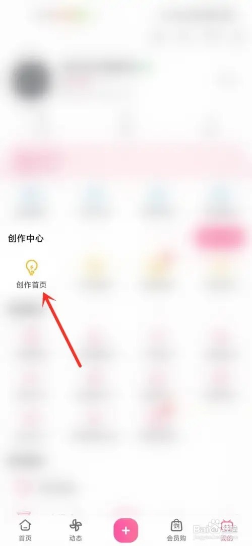 首先打开哔哩哔哩个人中心,点击【创作首页】。
