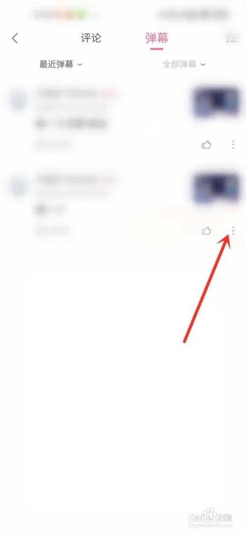 接着进入弹幕界面,找到要删除的弹幕,点击右侧【三个点】。