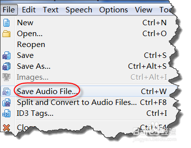 测试满意后,在“文件”菜单下选择“保存音频”菜单,快捷键ctrl+W。