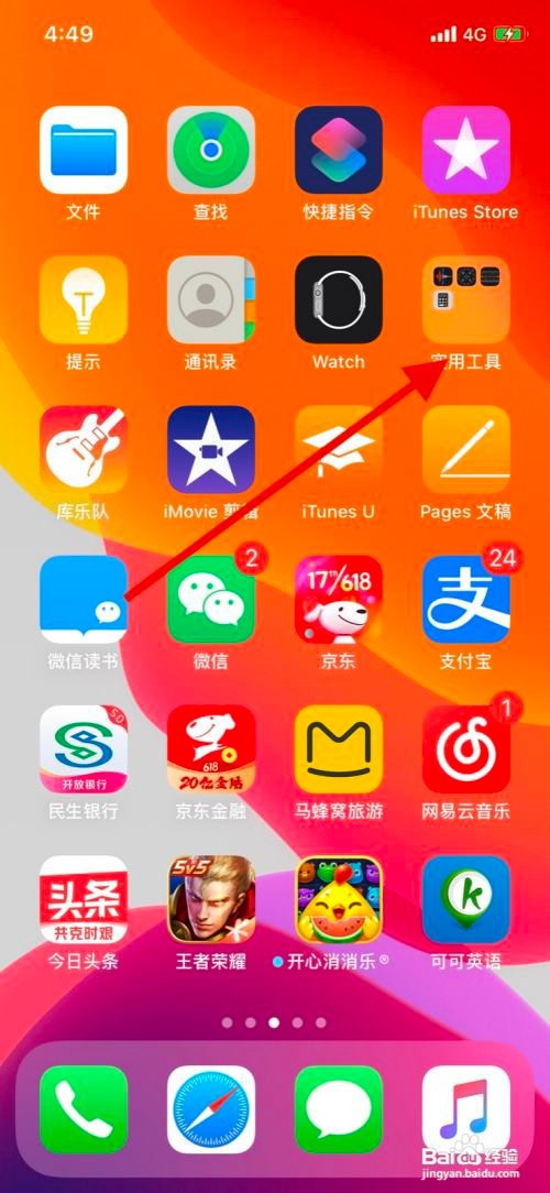 首先打开手机,在桌面找到并点击进入<实用工具>。