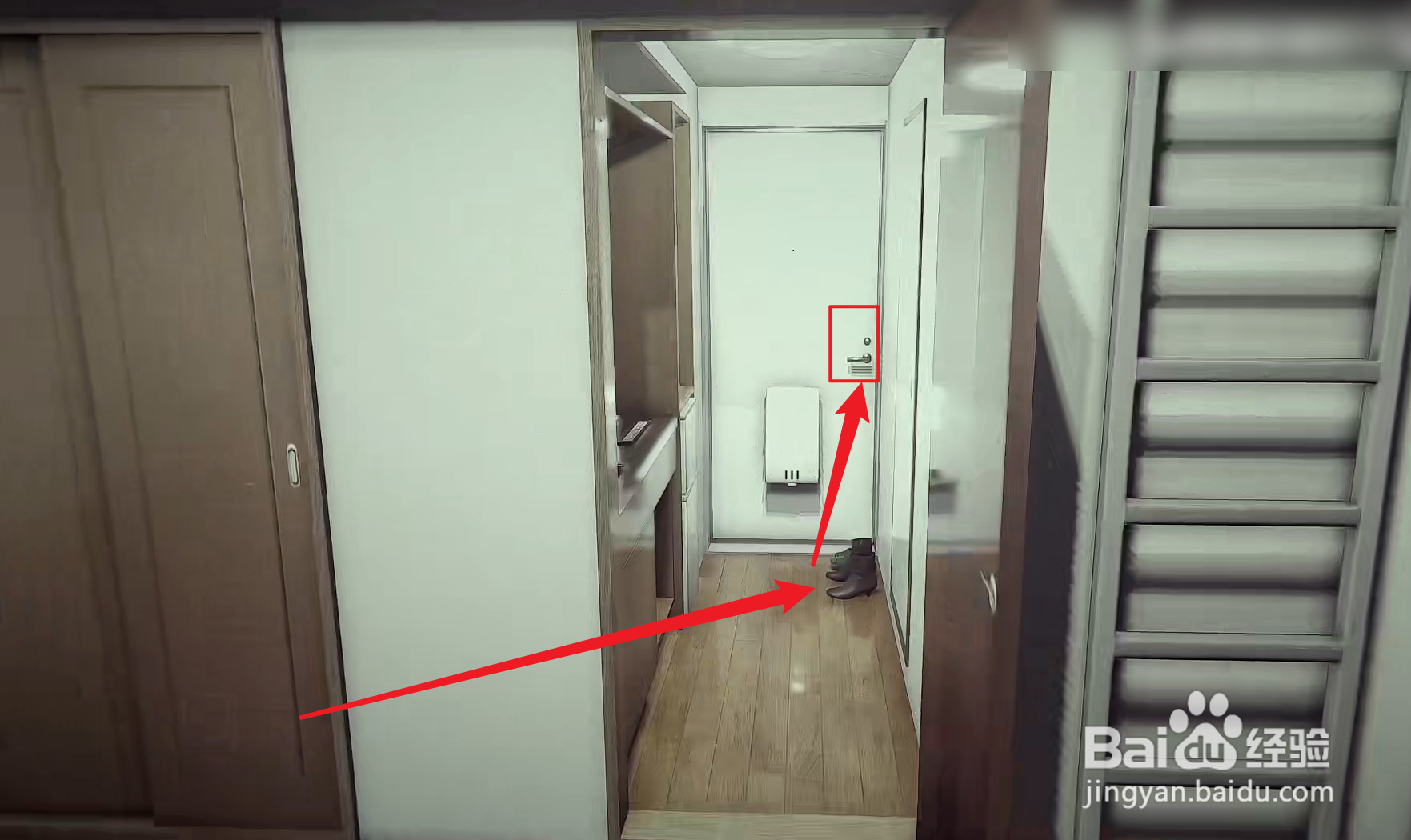 然后快速跳过背景剧情在玄关位置穿上鞋子并点击【房门】离开公寓