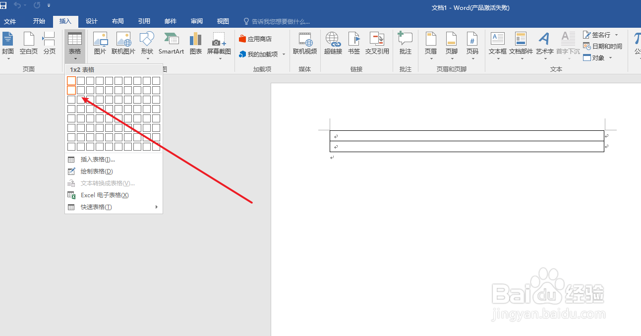 打开Word文档,首先点击顶部的【插入】,找到并点击【表格】;