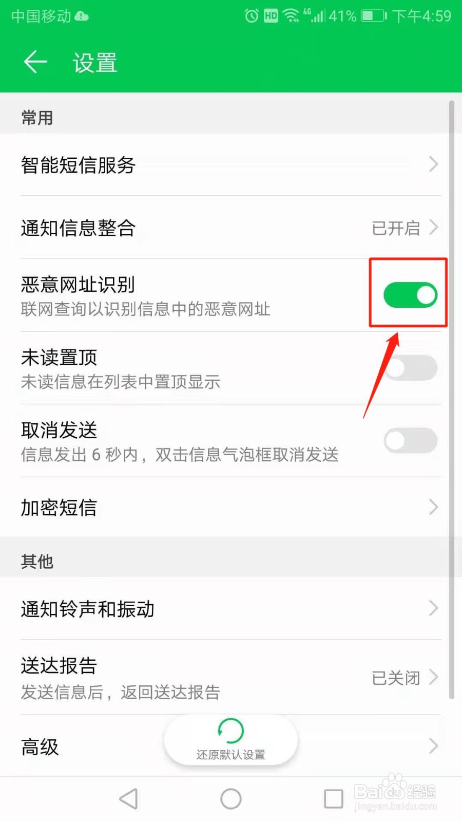 华为手机短信怎么开启恶意网址识别