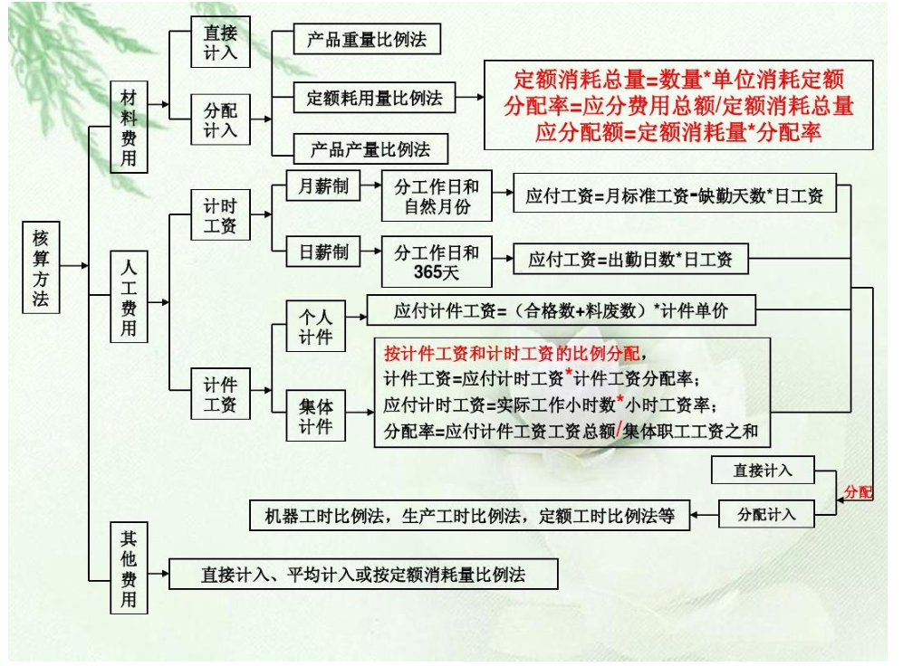 4.根据企业的生产特点和管理要求,选择适当的成本计算方法,确定成本计算对象、费用的归集与计入产品成本的程序、成本计算期、产品成本在产成品与在产品之间的划分方法等。方法有品种法、分批法和分步法,此外还有分类法、定额法等多种。